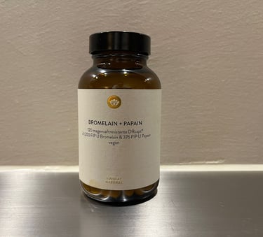 Origine : Enzymes extraites respectivement de l’ananas (bromélaïne) et de la papaye (papaïne). Elles agissent en synergie.