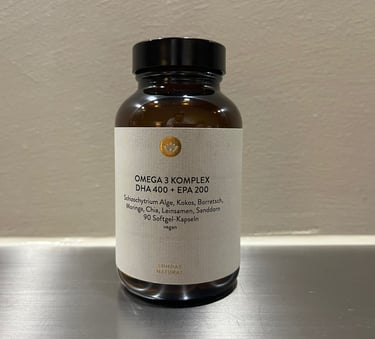 Intérêt : Très utiles dans les maladies inflammatoires chroniques, notre alimentation moderne ne permet généralement pas un apport suffisant. De plus, les omégas 3 issus des microalgues permettent d'éviter la destruction des océans contrairement aux oméga-3 de poisson issus de la pêche industrielle.